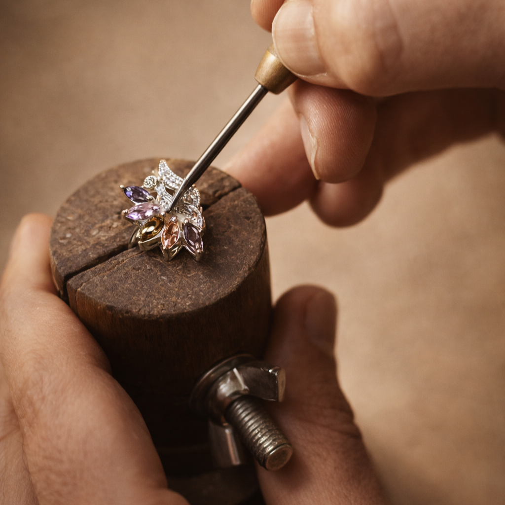 Each Oriseau piece begins with a clean silhouette and a single point of light. Designed to sit comfortably, worn daily, and finished to feel as refined as it looks.